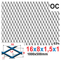 Siatka cięto-ciągniona OCYNK 16 x 8 x 1,5 x 1 | 1000 x 500 mm
