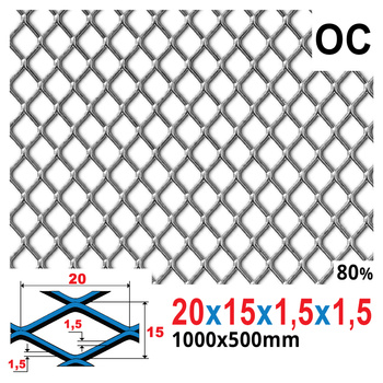 Siatka cięto-ciągniona OCYNK 20 x 15 x 1,5 x 1,5 | 1000 x 500 mm