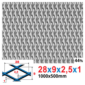 Siatka cięto-ciągniona SUROWA 28 x 9 x 2,5 x 1 | 1000 x 500 mm