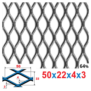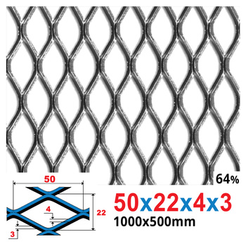 Siatka cięto-ciągniona SUROWA 50 x 22 x 4 x 3 | 1000 x 500 mm