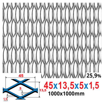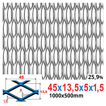 Siatka cięto-ciągniona SUROWA 45 x 13,5 x 5 x 1,5 | 1000 x 500 mm