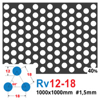 Blacha perforowana SUROWA OCZKO 12 mm PRZERWA 6 mm 1000 x 1000 mm Rv 12-18 Gr. 1,5 mm