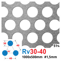 Blacha perforowana SUROWA OCZKO 30 mm PRZERWA 40 mm 1000 x 500 Rv 30-40 Gr. 1,5 mm