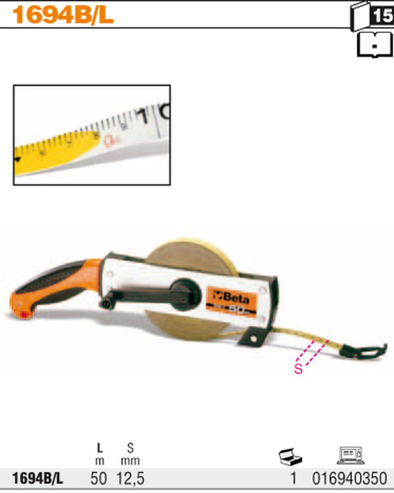 BETA Miara taśmowa z uchwytem PRZYMIAR ZWIJANY KLASA II 1694B/L 50 m