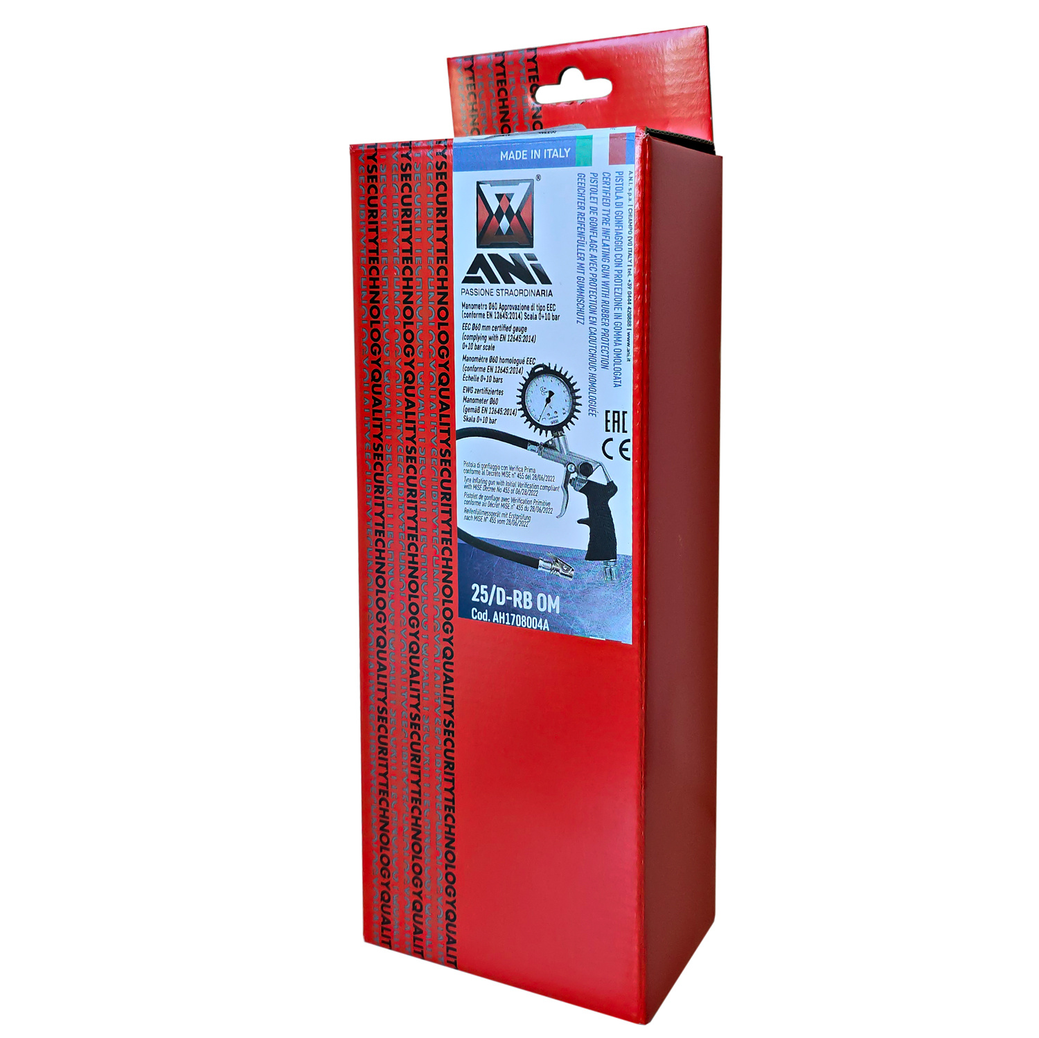 BETA Pistolet do pompowania Z HOMOLOGACJĄ zakres 0-10 bar, manometr ze skalą w psi i bar + wąż 400 mm. - 25/D-RB 0M