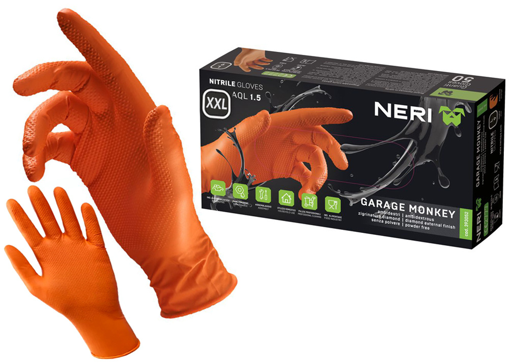 Rękawice nitrylowe, jednorazowe - GARAGE MONKEY POMARAŃCZOWE - Rozmiar 2XL/11 - op. 50 szt.