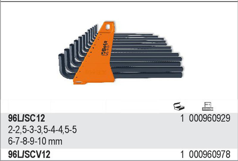 BETA Zestaw 12 kluczy IMBUSOWYCH DŁUGICH 96L/SC12
