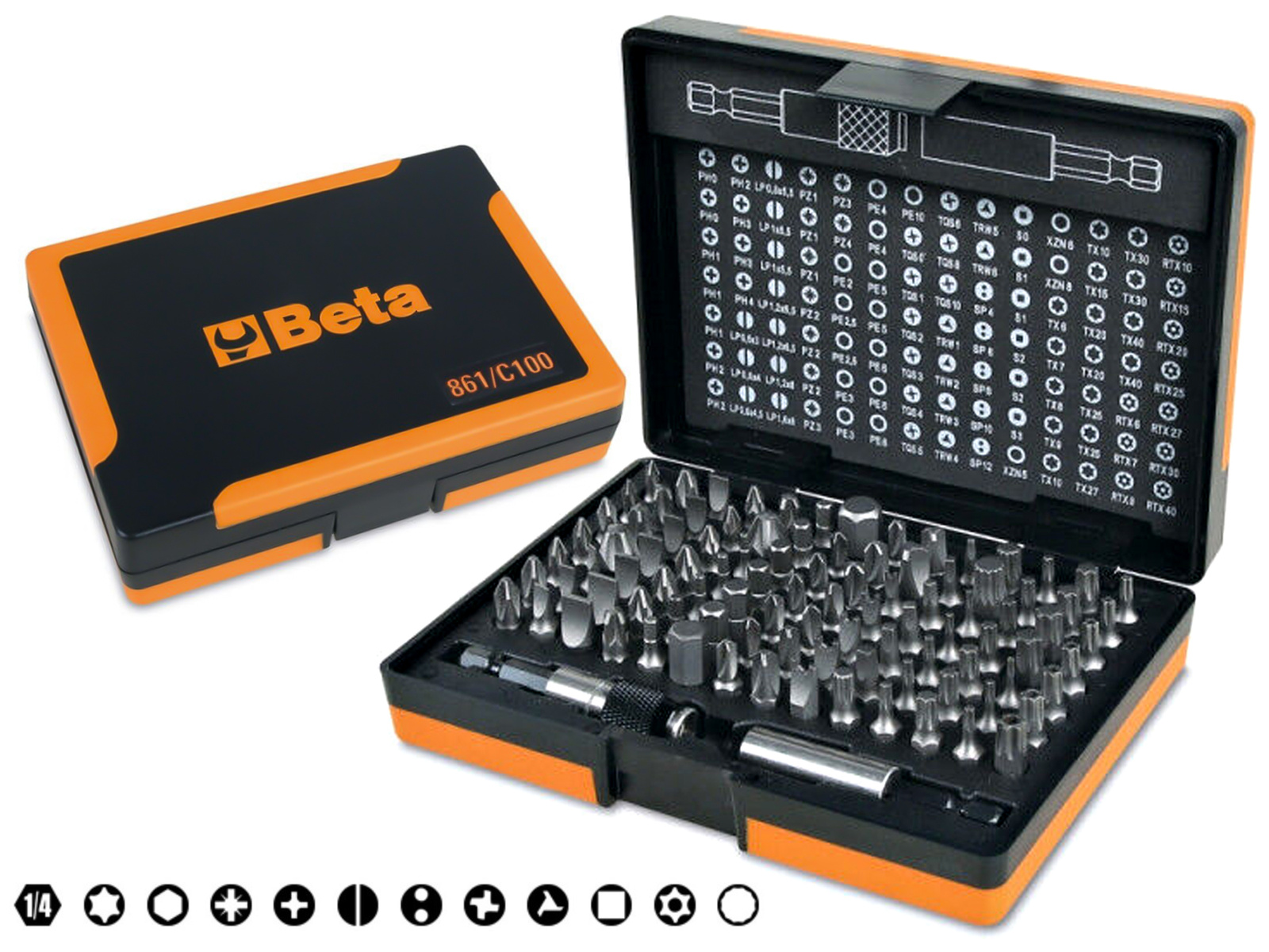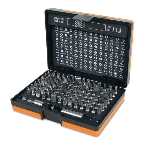 - Końcówki wkrętakowe TX: T6, T7, T8, T9, T10 (x2), T15, T20 (x2), T25 (x2), T27, T30 (x2), T40 (x2)