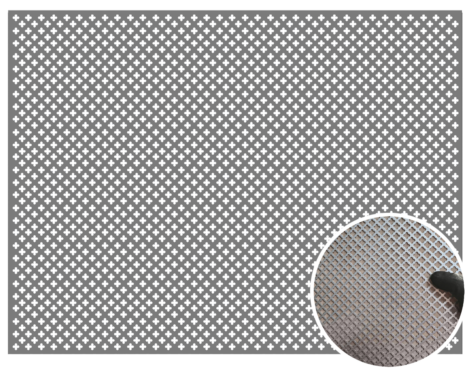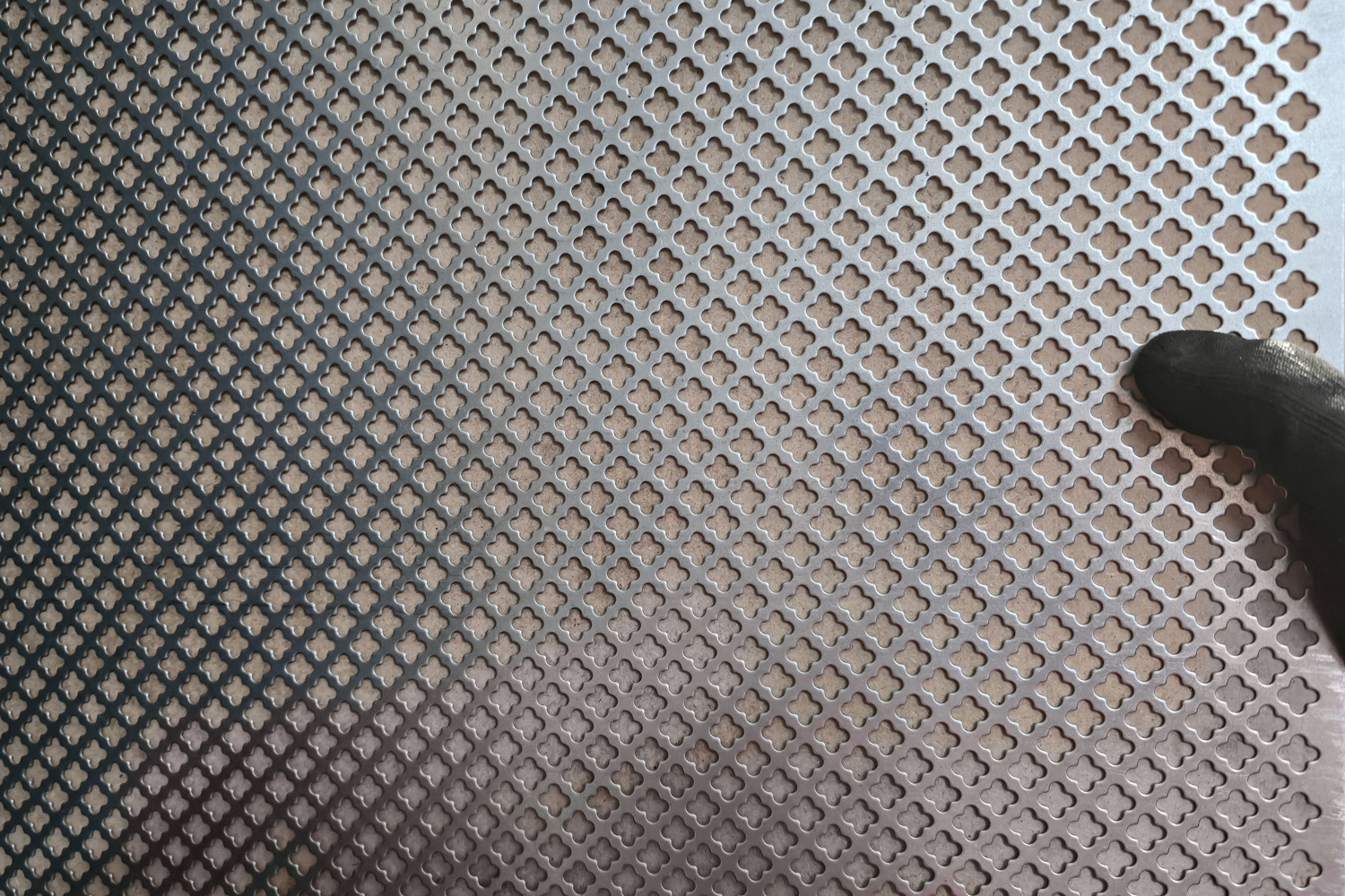 • Blacha perforowana ocynkowana (ocynk ogniowy srebrny) z oczkami ozdobnymi - koniczynka w układzie mijanym.