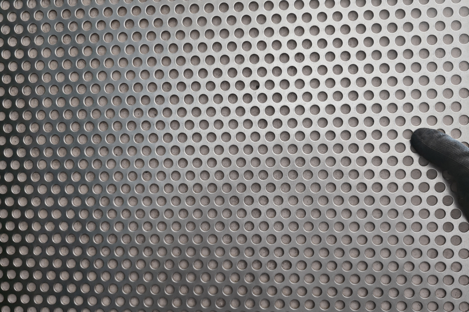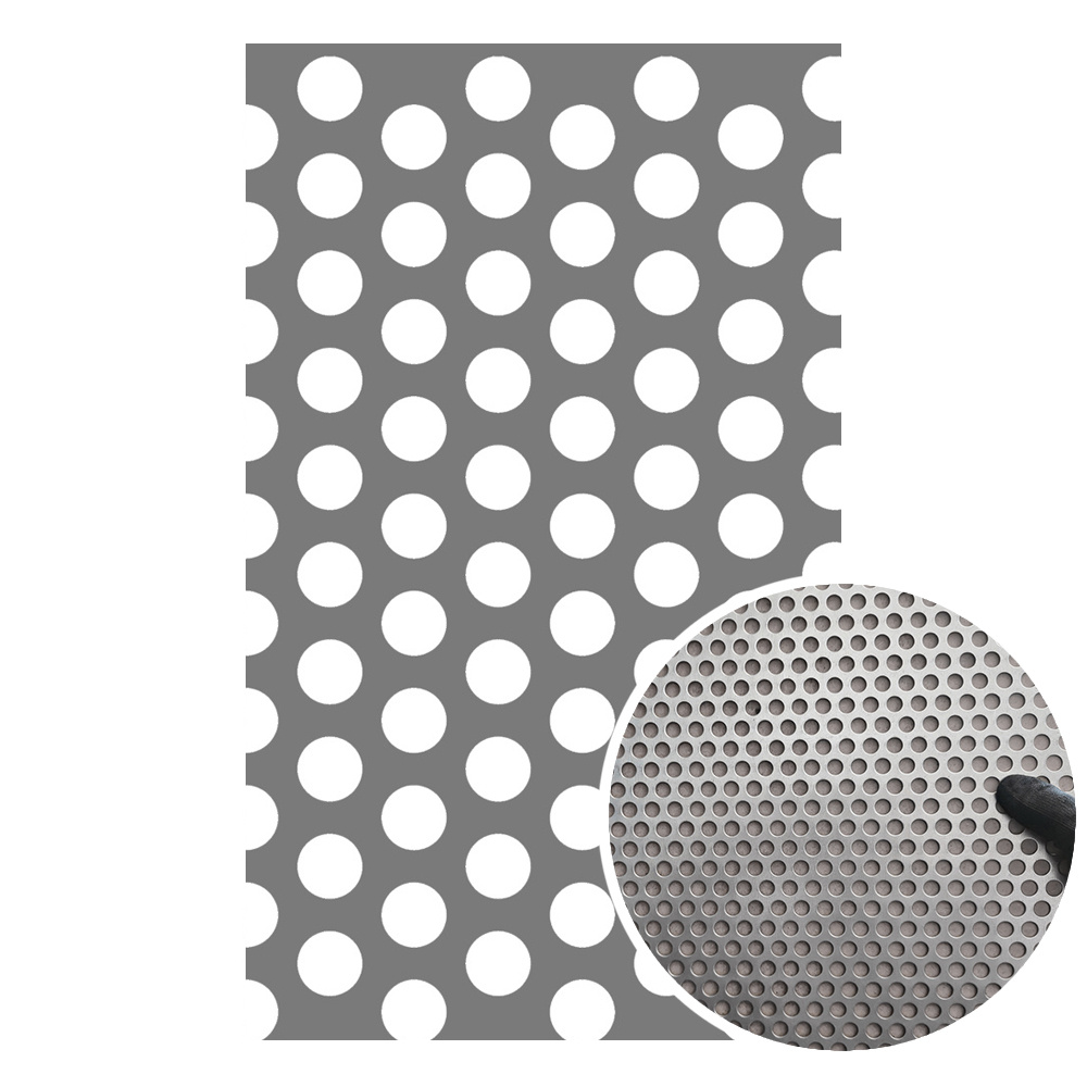 - Blacha perforowana ocynkowana (ocynk ogniowy srebrny) z oczkami okrągłymi w układzie mijanym.
