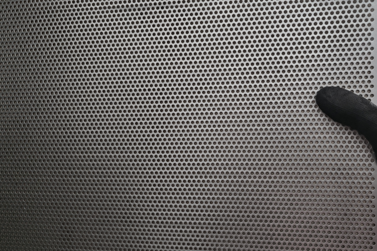 - Blacha perforowana ocynkowana (ocynk ogniowy srebrny) z oczkami okrągłymi w układzie mijanym.