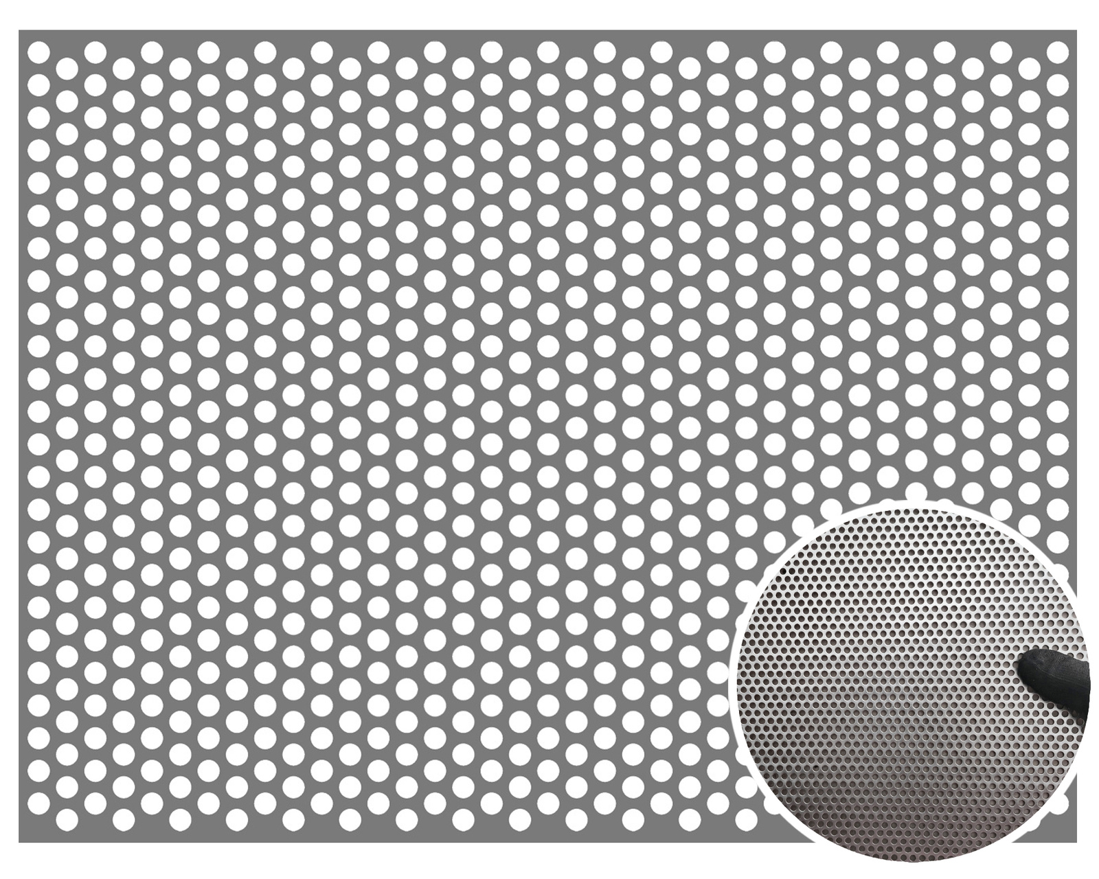 - Blacha perforowana ocynkowana (ocynk ogniowy srebrny) z oczkami okrągłymi w układzie mijanym.