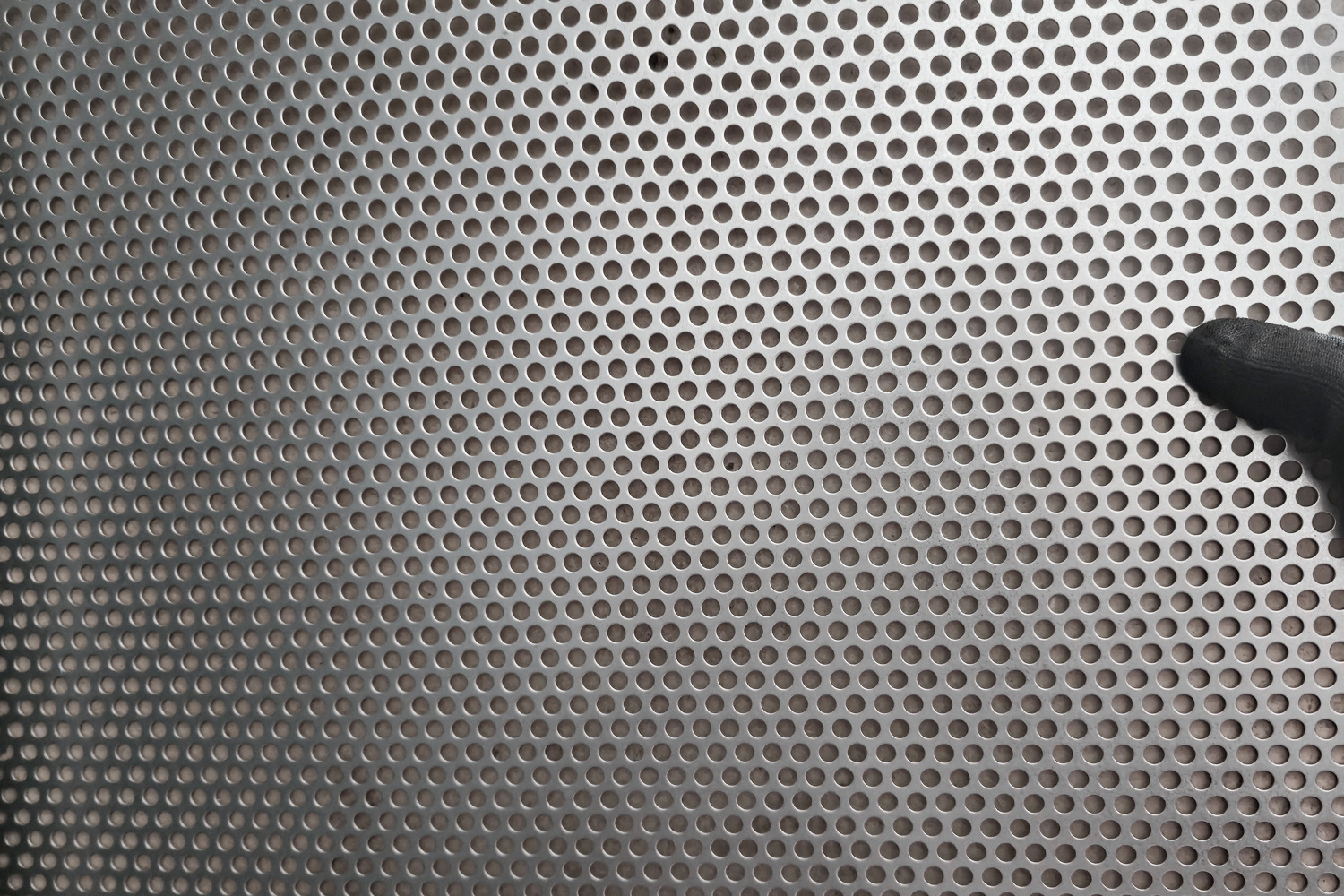 - Blacha perforowana ocynkowana (ocynk ogniowy srebrny) z oczkami okrągłymi w układzie mijanym.
