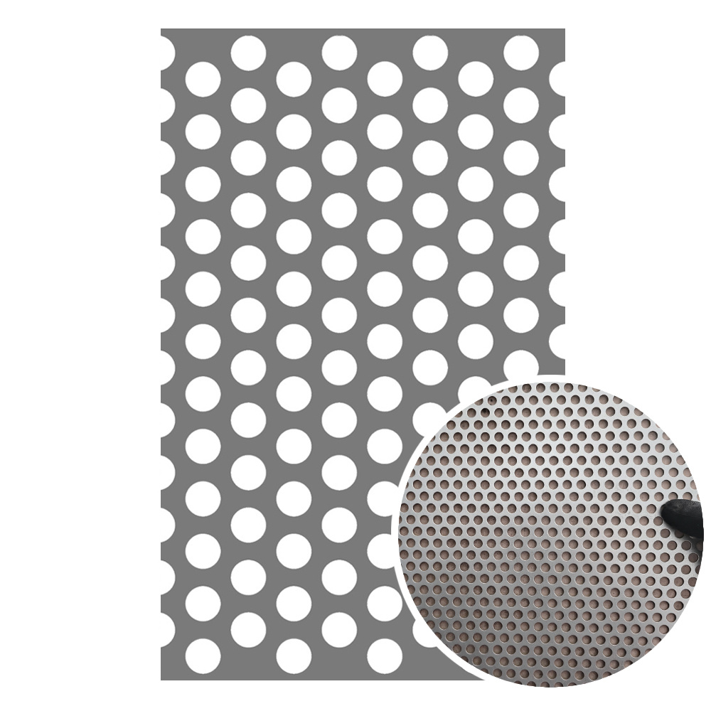 - Blacha perforowana ocynkowana (ocynk ogniowy srebrny) z oczkami okrągłymi w układzie mijanym.