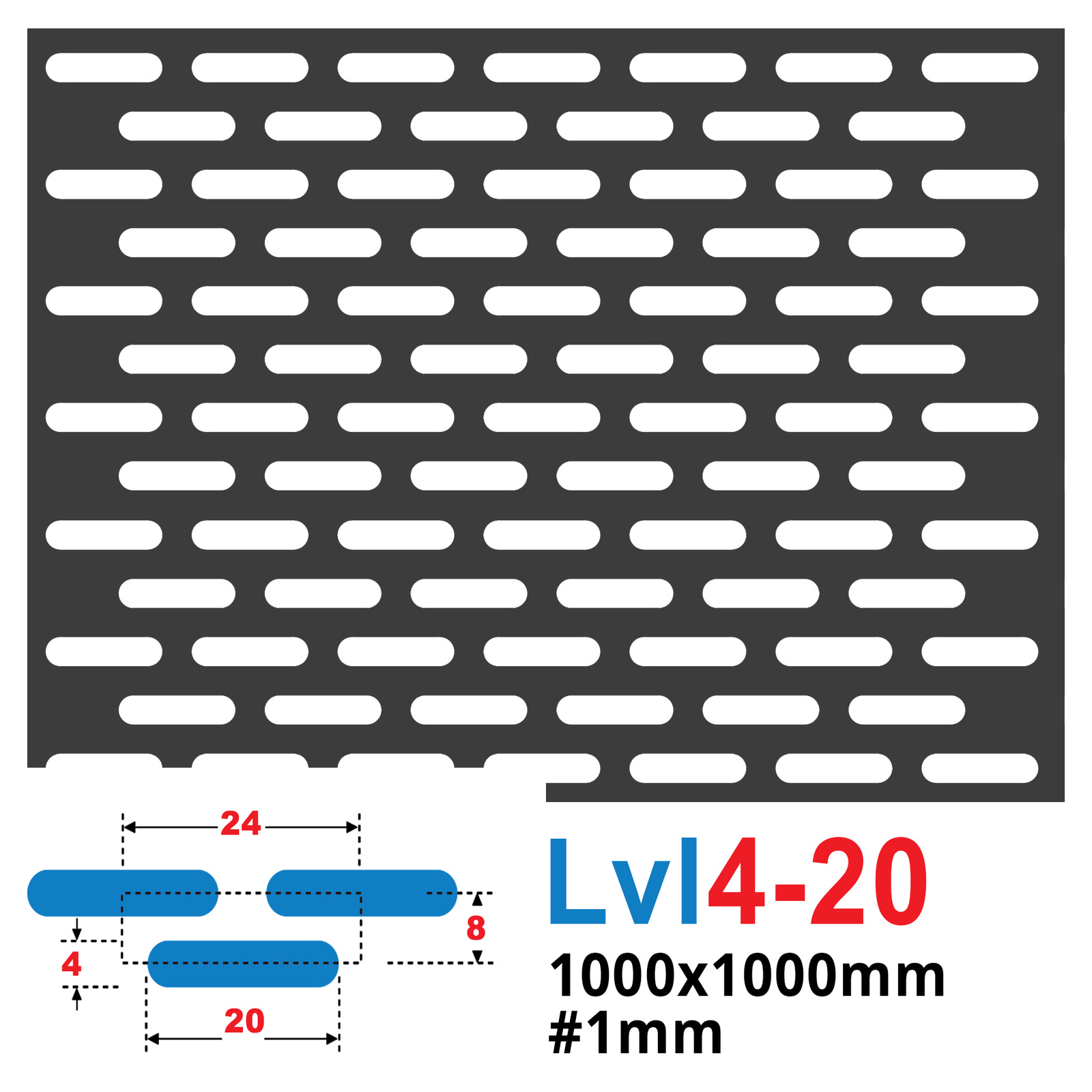 - Blacha perforowana stalowa (surowa) z oczkami podłużnymi w układzie mijanym.