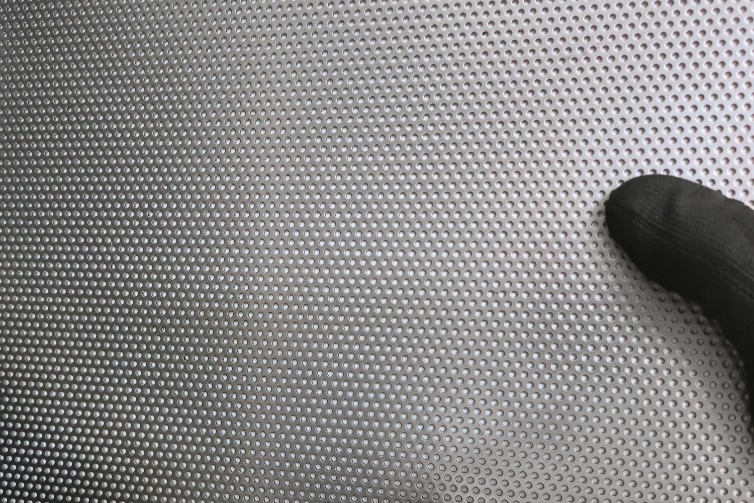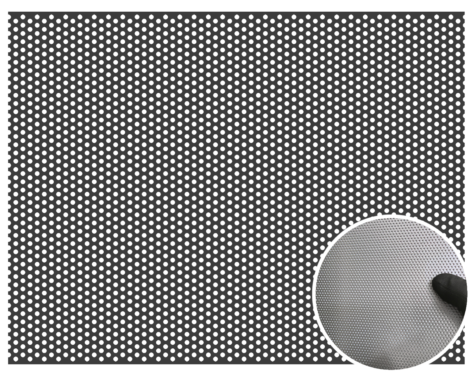 - Blacha perforowana stalowa (surowa) z oczkami okrągłymi w układzie mijanym.