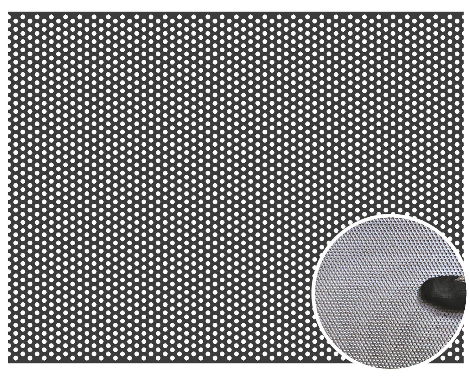 - Blacha perforowana stalowa (surowa) z oczkami okrągłymi w układzie mijanym.