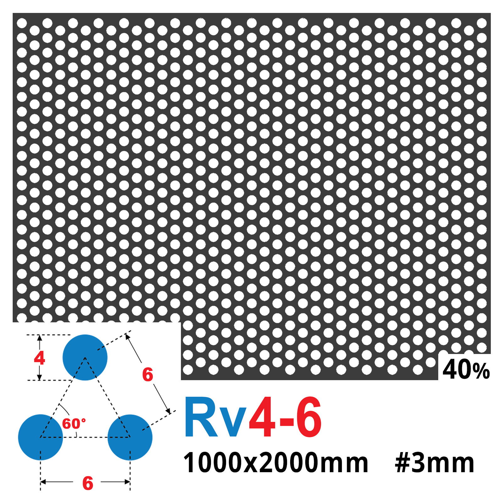 Blacha perforowana SUROWA OCZKO 4 mm PRZERWA 2 mm 1000 x 2000 mm Rv 4-6 Gr. 3 mm