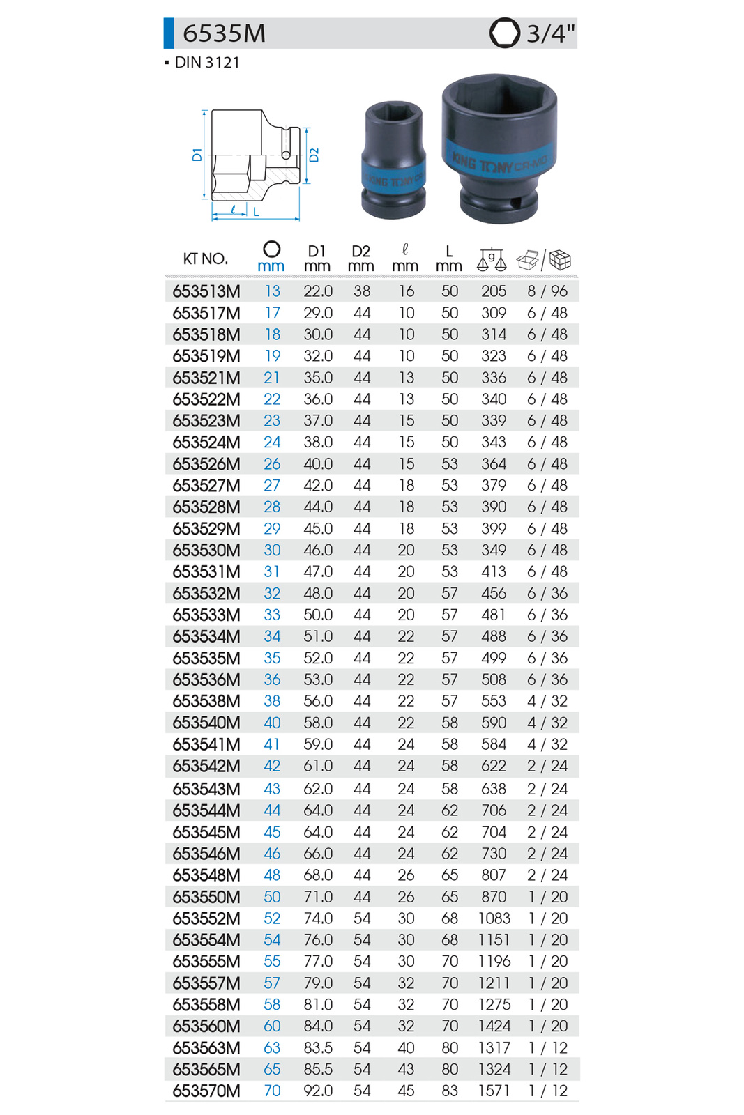 KING TONY Klucz nasadka UDAROWA KRÓTKA 3/4" 6-KĄTNA 32 x 57 mm