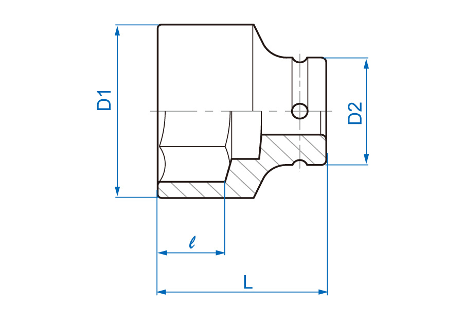 - NASADKA METRYCZNA UDAROWA KRÓTKA 3/4" 6-kąt. Cr-Mo rozmiar 32 x 57 mm
