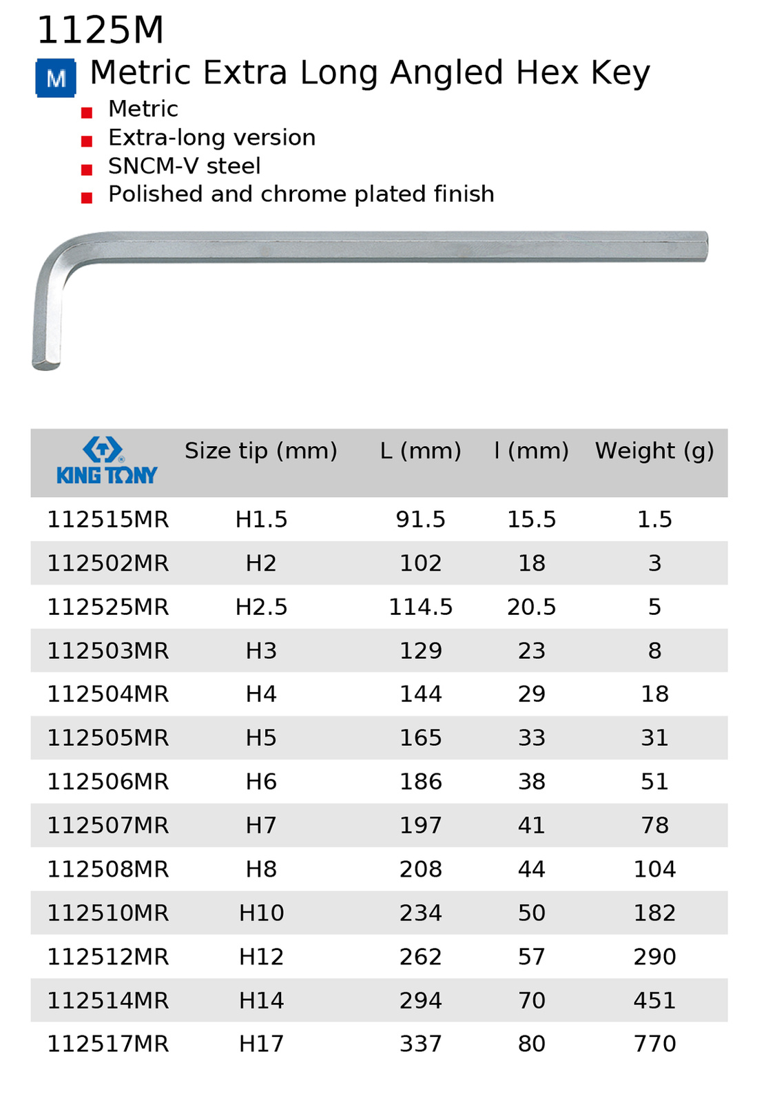 KING TONY KLUCZ TRZPIENIOWY DŁUGI IMBUS H5 x 165 mm