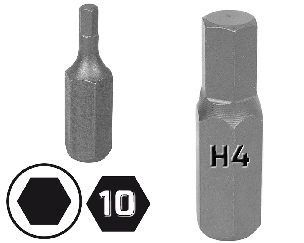 • Bit końcówka na uchwyt 6-kątny 10 mm imbusowa KRÓTKA HEX rozmiar H4 x 36 mm