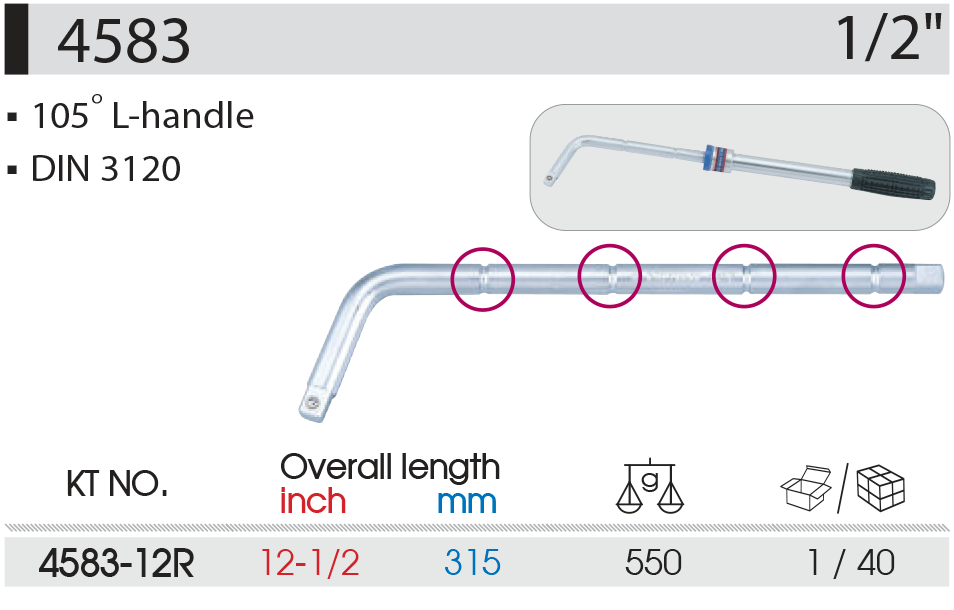 KING TONY POKRĘTŁO TYPU "L" CR-V 1/2" 105° 315 mm 4583-12R