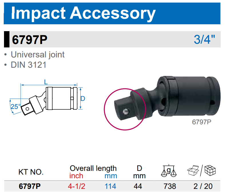 KING TONY PPRZEGUB KULISTY UDAROWY 3/4" 114 mm 6797P