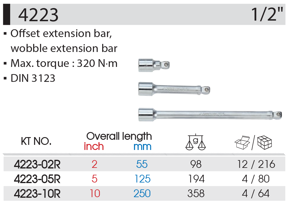 KING TONY PRZEDŁUŻKA UCHYLNA 1/2" 55 mm