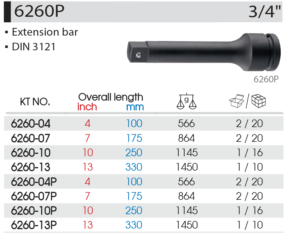 • Przedłużka udarowa stała na 3/4" o długości całkowitej 175 mm