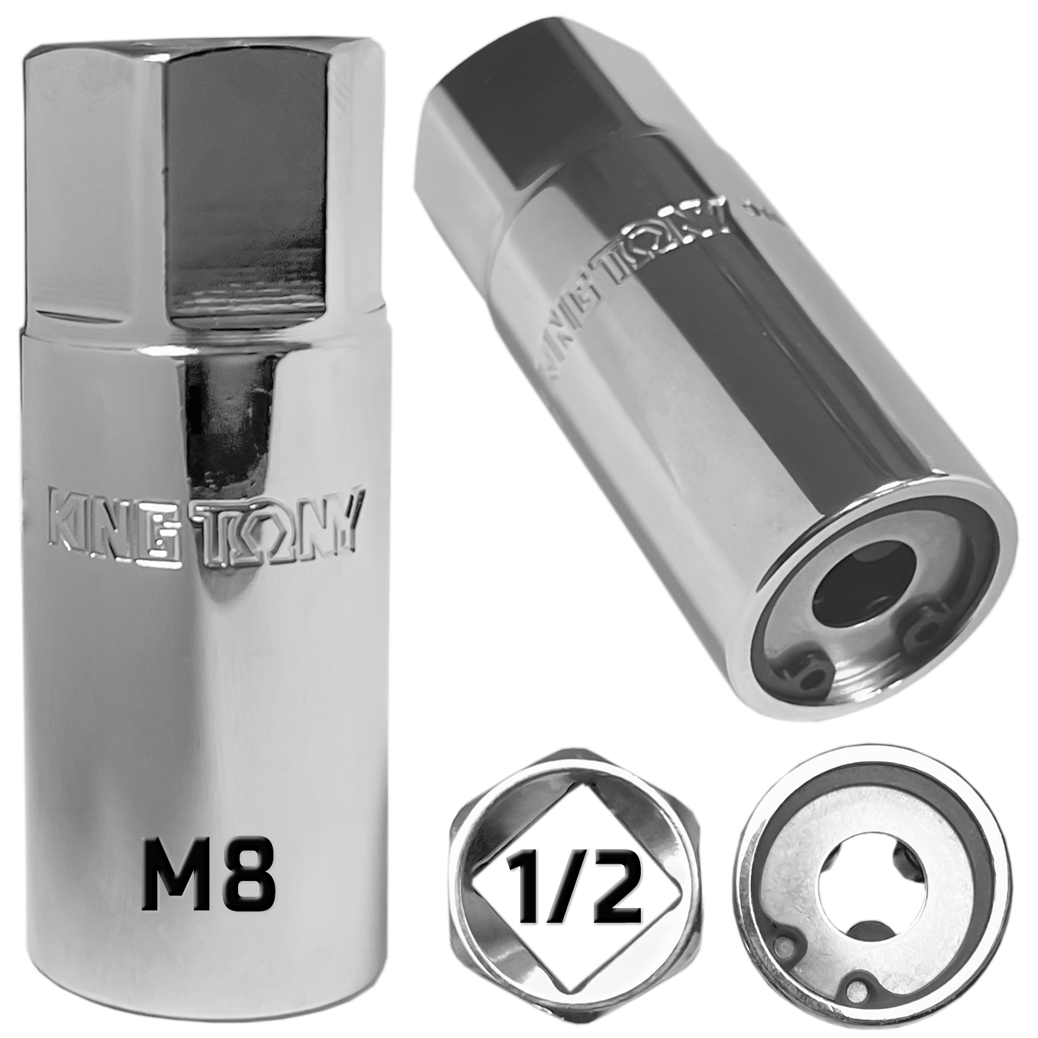 - KING TONY WYKRĘTAK ROLKOWY o rozmiarze M8 przeznaczona do wkręcania i odkręcania szpilek, obsługiwana kluczem 21 lub grzechotką 1/2" o długości całkowitej 60 mm