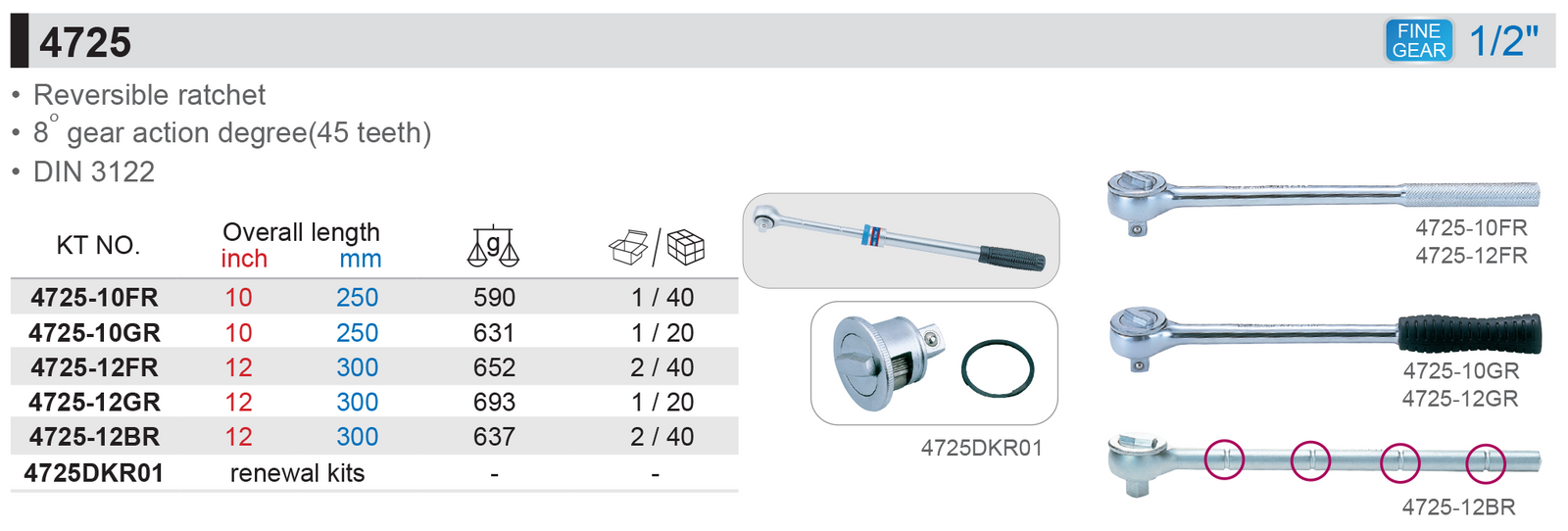 • Zestaw naprawczy przeznaczony do naprawy grzechotki 1/2" do pokręteł 4725-10FR, 4725-10GR, 4725-12FR, 4725-12GR oraz 4725-12BR