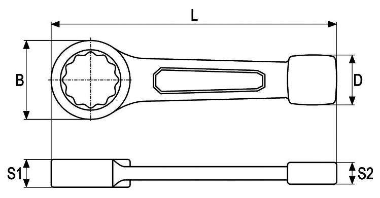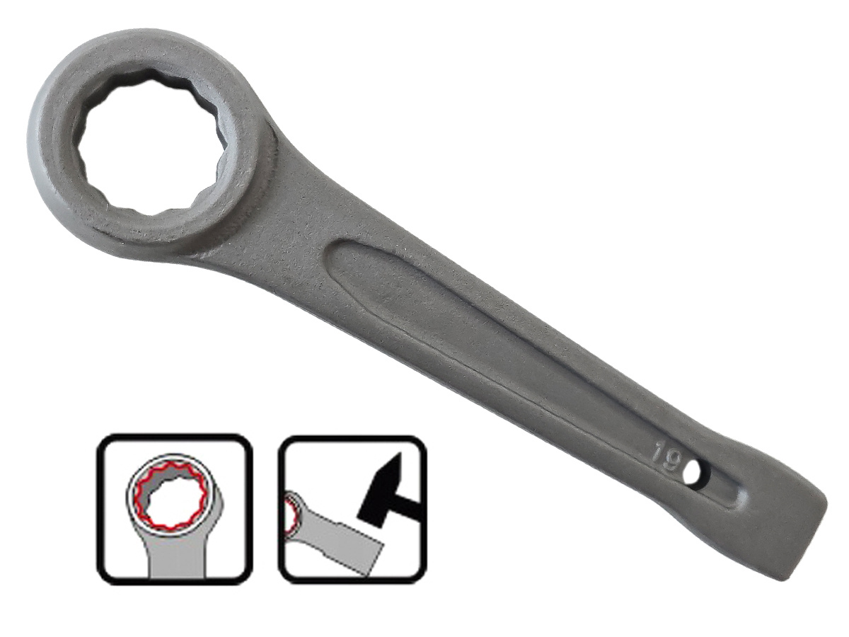 - Klucz z płaską, prostą powierzchnią, posiadający kowadełko umożliwiające podbijanie młotkiem w celu luzowania lub dokręcania elementów złącznych.