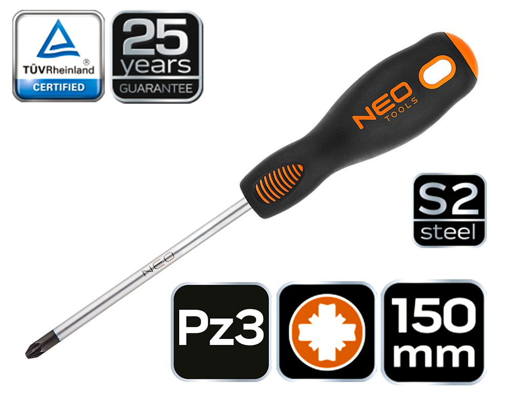 Wkrętak krzyżowy PZ3 x 150 mm z magnetyczną końcówką i grotem ze stali S2.