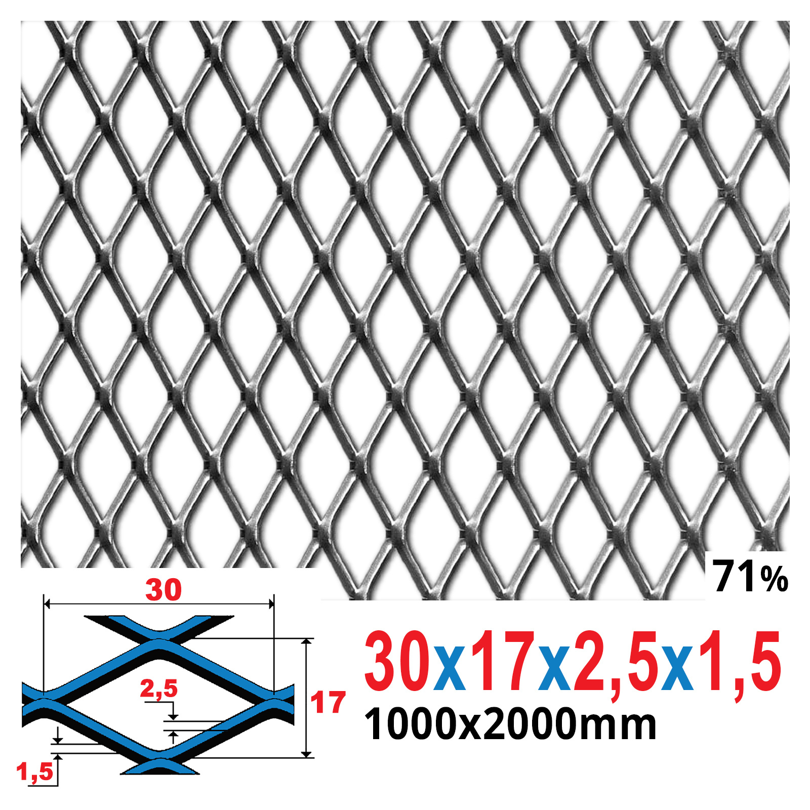 Siatka cięto-ciągniona SUROWA 30 x 17 x 2,5 x 1,5 | 1000 x 2000 mm