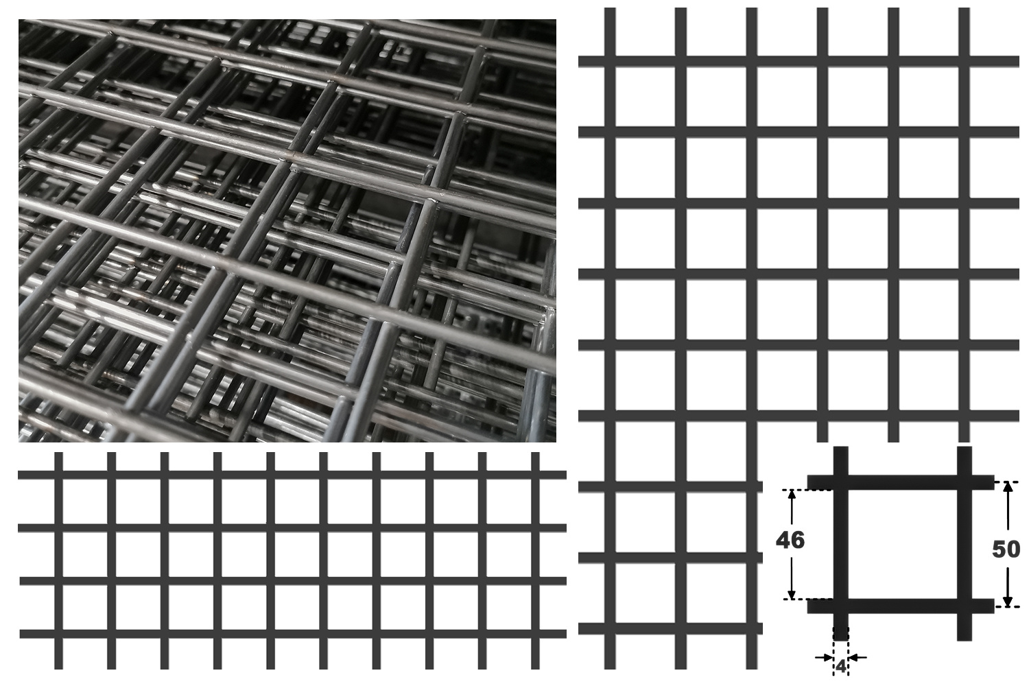 - siatka zgrzewana (Weldmesh) z drutu stalowego (surowa);