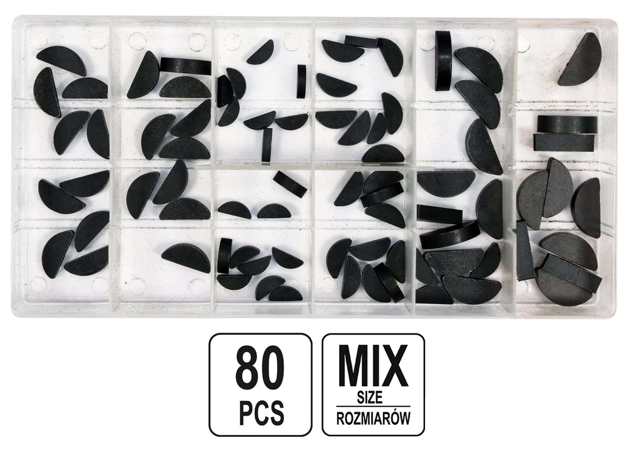 • Zestaw klinów półokrągłych, czółenkowych - 80 sztuk.